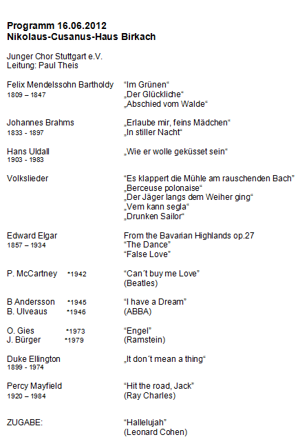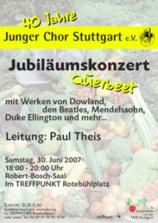 Nachdem das Jahr 2006 ganz im Zeichen geistlicher Musik stand, singt sich der Juco in seinem Jubiläumsjahr querbeet durch sein 40jähriges Repertoire.