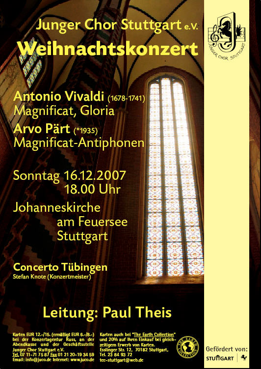 Konzertbericht Magnificat/ Gloria - Weihnachtskonzert, Stuttgart, 16. Dezember 2007