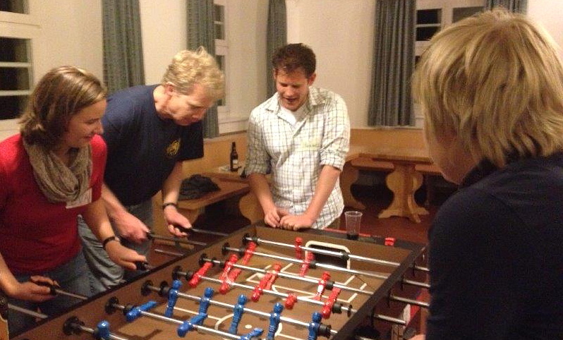 Doch nach den vielen Führungen brauchten wir erstmal eine herzhafte Stärkung und etwas Ruhe für die platten Füße. Die war auch nötig, denn wir hatten nochmal eine intensive Probe vor uns im Pfarrhaus von St. Paul, Sandras ehemaliger Probenstätte. Denn es saßen einige Stücke bei der letzten Chorprobe am Abend vor der Abreise noch nicht so sicher, wie sich das unser Maestro gewünscht hätte. Doch wurden wir am Ende der Probe mit freudigem Kichern und Glucksen von 'Juco-Kind' Martin belohnt, der aufmerksam mit Schwesterchen Marlene unsere Gags beim "3-Minuten-Messias" verfolgte. Oder lag's an Pauls Witzchen und lustigen Grimassen? So bestärkt konnte ja beim Konzert morgen nichts mehr schiefgehen!