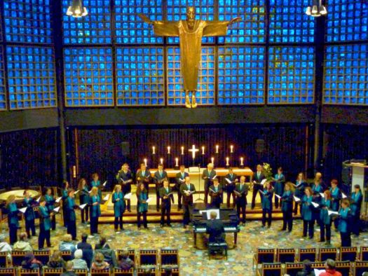 Gloria: Im zweiten Teil trug der JuCo Vivaldis „Gloria“ vor, das in seiner Ausdrucksintensität und stilistischen Vielfalt exemplarisch für die Vielgestaltigkeit des Komponisten steht: Oboe und Trompete verleihen den Rahmensätzen einen festlichen Glanz, Streicherbegleitung bestimmt die übrigen Sätze und das „Domine Deus“ wirkt durch seine kleine Besetzung mit Solosopran, Oboe und Kontrabass. Dies gab dem JuCo Gelegenheit, seine stimmliche Bandbreite zu zeigen. So wurde der zweite Satz „Et in terra pax“ getragen und spannungsvoll gesungen, während die Fuge „Propter magnam gloriam“ voller Elan und Dynamik vorgetragen wurde. Stimmliche Höhepunkte waren die Soli aus den eigenen Reihen des JuCo. Das Publikum in der Johanneskirche am Feuersee hat das Konzert sichtlich genossen und freute sich über die spannungsreiche Programmgestaltung von Paul Theis. Das Konzert war eine gute Werbung, um singfreudige Männer zu gewinnen, die der JuCo momentan sucht.