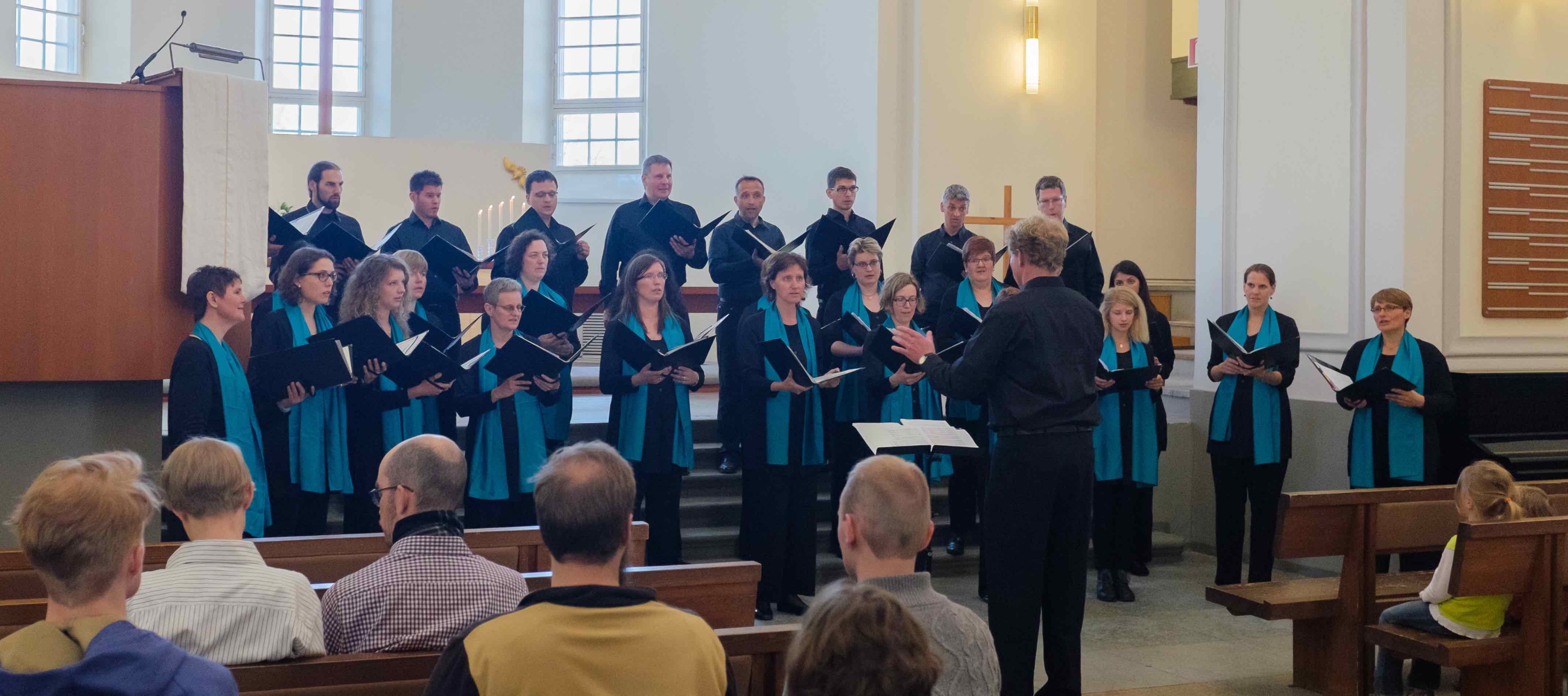 Die gut 40 Sänger/innen, 25 Frauen- und 18 Männerstimmen, gestalteten mit sicht- und hörbarer Musizierfreude und hielten dabei Kontakt zum Publikum. Ein natürlicher, direkter und unmanierierter Klang; die Dynamik differenziert und einfühlsam, die Balance zwischen den Stimmgruppen ausgewogen. Immer wieder berührten feine Pianissimo-Klänge, wobei die Intonation mitunter ihre Unschärfen hatte. So wurde der Chorsatz in Brahms‘ „Es ist das Heil uns kommen her“ zumal an den polyphon dichten Fugen-Stellen etwas gröber und dicker. Auch Poulencs „Quatre motets pour le temps de Noël“ mit ihren heiklen, spröden Sept-Klängen, offen und gespannt, bräuchten zu ihrer Wirkung eine glasklar kristalline Transparenz. Dafür war der Chorklang immer warm und sprach den Hörer unmittelbar an.