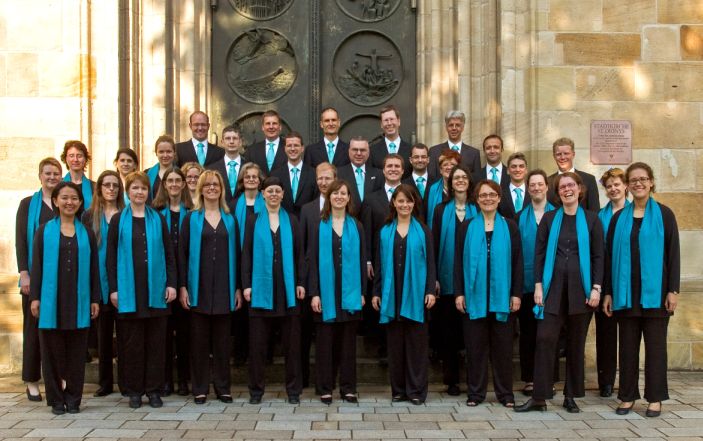 Für Jasmin, Uli K., Klaus und Anke begann der nächste Tag mit einem kühnen Sprung in den nahegelegenen See, für alle anderen höchstens mit einer Dusche. Nachdem wir unseren Chorleiter Paul in Zeitz abgeladen hatten, damit er in aller Ruhe alle Register für das abendliche Konzert ziehen konnte, ließen wir uns von Detlef nach Naumburg chauffieren. Dort machten wir eine Stadtführung und anschließend eine Führung durch den romanisch-gotischen Dom. Wieder einmal eine gute Gelegenheit das Chorbuch zu zücken und eine Einlage zu geben, diesmal dirigiert von Maria. Eine gute Vorbereitung für das Konzert am Abend im Zeitzer Dom. Wir gestalteten ein Abendlob, eine Gottesdienstform, die sich an der Liturgie der anglikanischen Kirche orientiert. Im Wechsel mit Lesung und Fürbitten und eingerahmt von Orgelwerken, die Paul kunstvoll darbot, trugen wir englische und deutsche Psalmvertonungen vor. Dazu gehörten u.a. wunderbare Kompositionen von Chilcott, Rutter, Totzke und Stanford. Thomas gab hierbei sein Tenor-Solo zum Besten und Maria begleitete uns gekonnt bei einigen Stücken auf der Orgel und stellte so ihr besonderes Musiktalent unter Beweis. Es war für uns alle ein unvergessliches Erlebnis, in der prächtigen Kirche vor zahlreichem Publikum zu singen – ein wirklich tolles Konzert.
