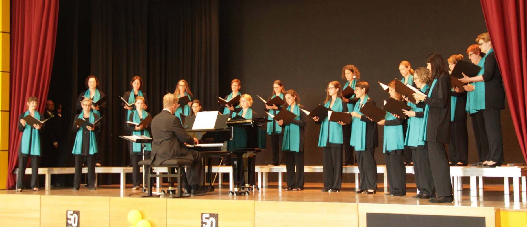 Ein halbes Jahrhundert Juco! Natürlich sollte das Konzert v.a. dazu dienen, den Werdegang des Ensembles seit 1967 sowohl musikalisch als auch anekdotisch nachzuzeichnen. Christine Reber, seit einigen Jahren als Stimmbildnerin für viele Chorsänger tätig, moderierte mit charmanten Ansagen durch das Programm und brachte das Publikum mit wohl-pointierten Kurzgeschichten aus der Juco-Historie zum Schmunzeln. So assistiert, konnte sich Chorleiter Paul Theis diesmal ausschließlich auf das Dirigat und die tlw. sehr anspruchsvolle Klavierbegleitung konzentrieren. Das musikalische Programm stellte natürlich die gesamte Bandbreite des Chor-Repertoires in den Mittelpunkt, bestehend aus geistlichen und weltlichen Stücken unterschiedlichster Epochen, d.h. sowohl "alter" klassischer Werke als auch "neuer", modernerer Arrangements.