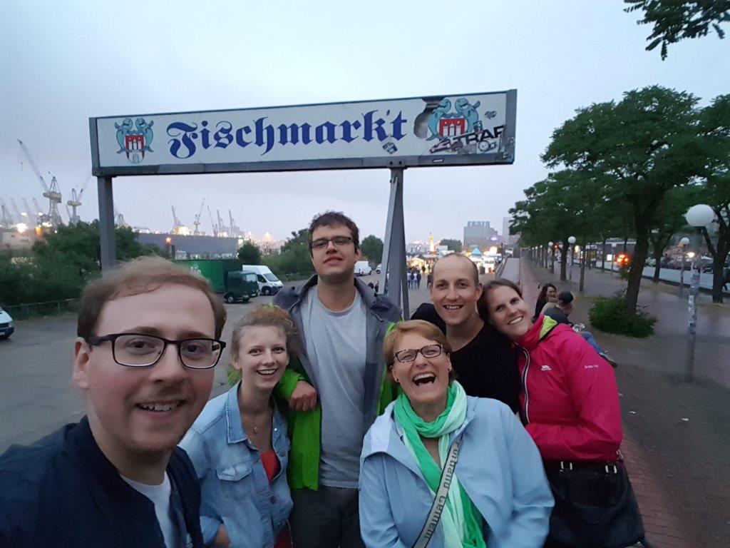 Ein kleiner Trupp von sechs Leuten hielt es bis 5 Uhr aus und ging auf den berühmten Fischmarkt am Hafen. Passend zur Jahreszeit gab es dort allerlei Früchte und Säfte und viele Familien machten bereits ihren Wochenendeinkauf. In der Auktionshalle spielte eine Band und die feiernden Menschen strömten von der Reeperbahn in die Halle und die Party ging weiter.