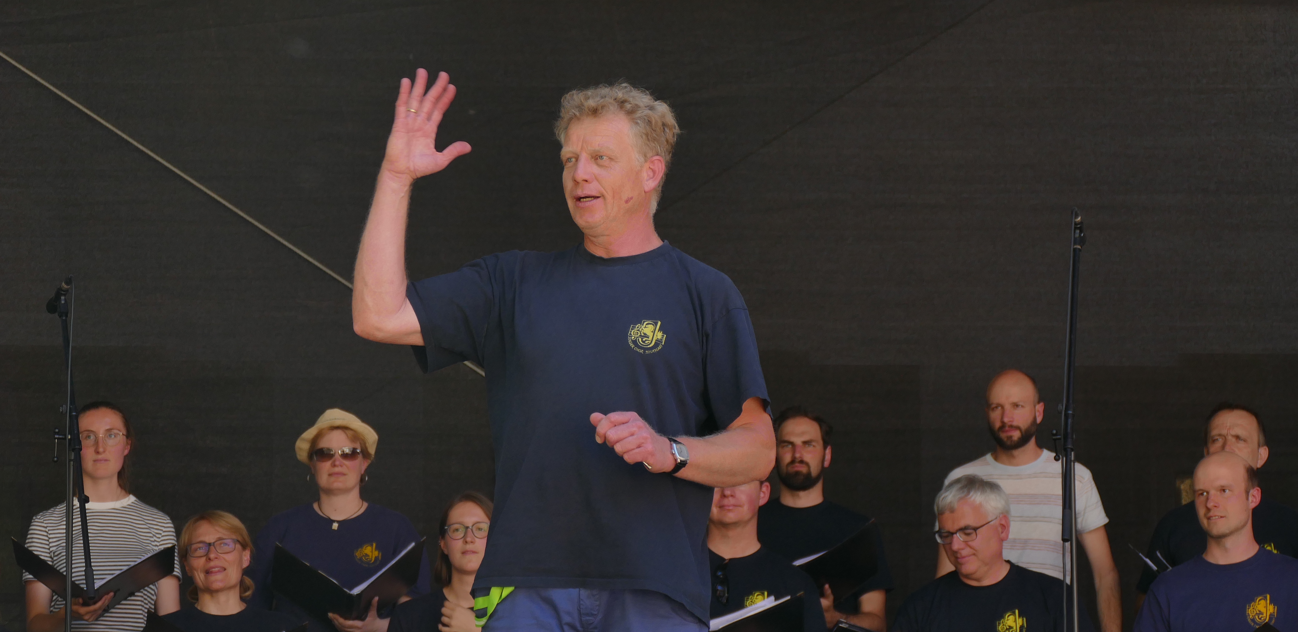 Zum letzten Stück erwischte der kühle Regen leider doch noch den Killesberg, doch das Publikum harrte aus, um dem gemeinsamen Abschluss der beiden Ensembles, Cantores Mundi und Junger Chor Stuttgart zu lauschen: "Kein schöner Land..." (nein, wir wollten keine Parteiwerbung für die Grünen machen 😉 )