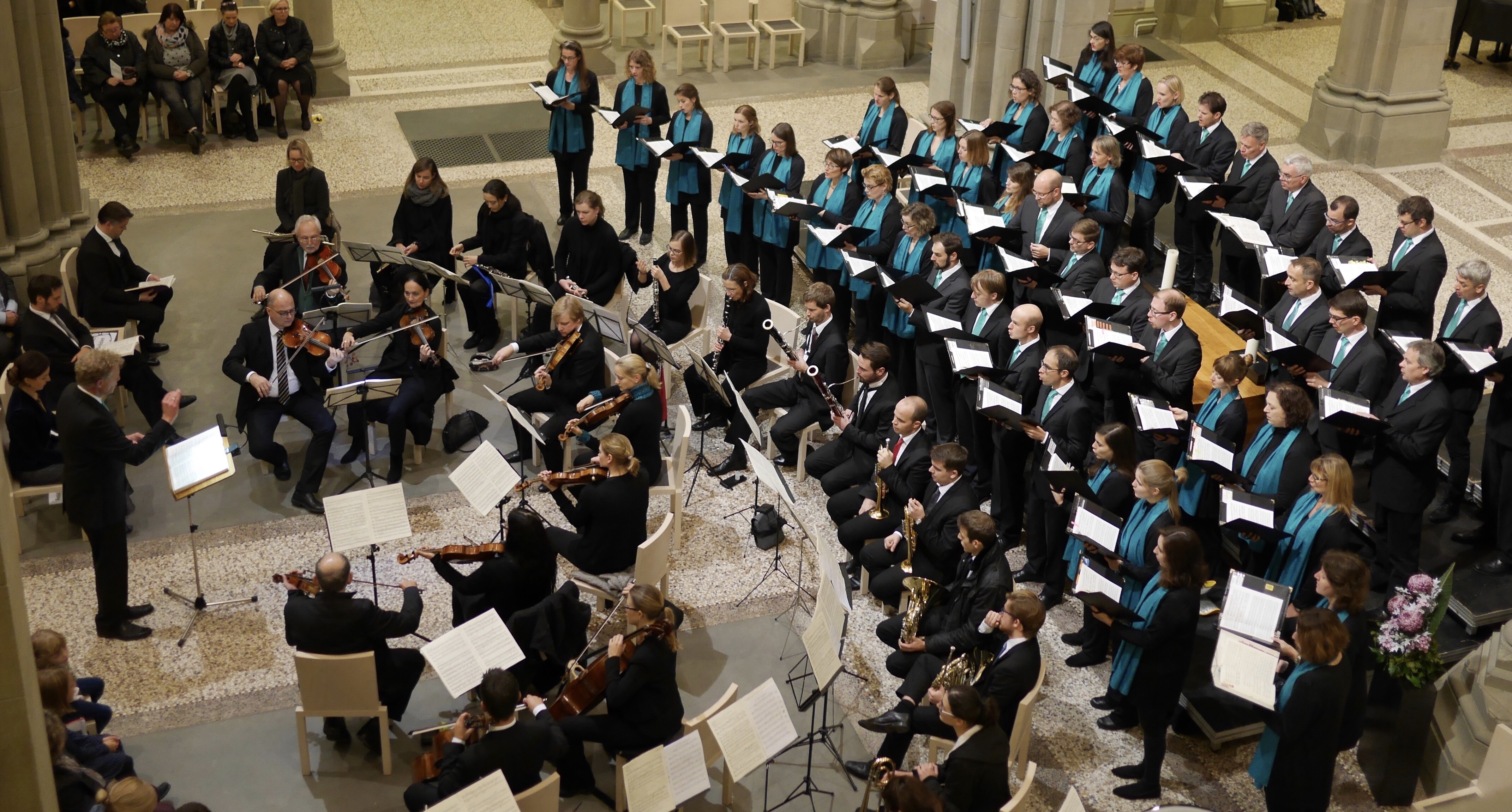 Bei dieser geistlichen Abendmusik, die im Rahmen der Stuttgarter Chortage stattfand, wurde der Chor vom "musikalischen Hausherrn" und Stuttgarter Regionalkantor Tobias Wittmann als Organist bzw. Solist, sowie Magnus Rook als Sprecher begleitet.