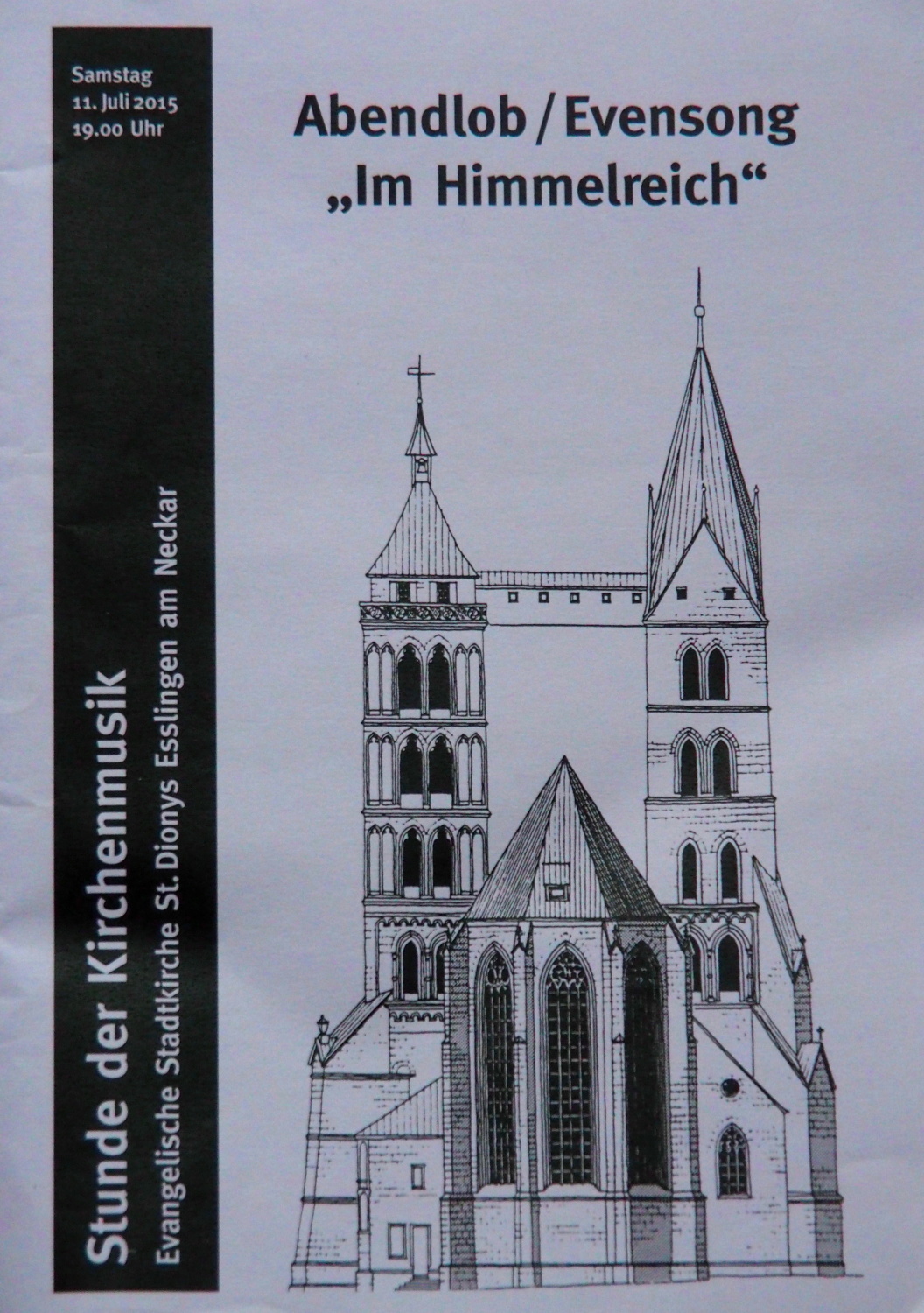 Programm zur "Stunde der Kirchenmusik" in Esslingen/ St. Dionys, 11. Juli 2015