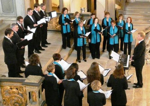 Die Herausforderung meisterten wir jedoch bestens und es machte uns riesigen Spaß, unser A-Capella-Repertoire v.a. der heiter-groovigen „Mucke" präsentieren zu können: Sei es „The Lion Sleeps Tonight“, der 3-Minuten-Messias (eine Melange á la Händel), lebhafte Arrangements zu Grönemeyers „Mambo“ sowie dem Spiritual "Soon ah will be done“ oder die Cross-Over-Variation von "O Täler Weit“ - alle Stücke kamen sehr gut beim Publikum an! Und es kam noch besser: Auch den Veranstaltern gefiel unser Vortrag so gut, dass sie uns kurzerhand ein Angebot für weitere Konzertveranstaltungen IN der Grabkapelle machten!