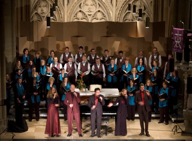 Gloria: Im zweiten Teil trug der JuCo Vivaldis „Gloria“ vor, das in seiner Ausdrucksintensität und stilistischen Vielfalt exemplarisch für die Vielgestaltigkeit des Komponisten steht: Oboe und Trompete verleihen den Rahmensätzen einen festlichen Glanz, Streicherbegleitung bestimmt die übrigen Sätze und das „Domine Deus“ wirkt durch seine kleine Besetzung mit Solosopran, Oboe und Kontrabass. Dies gab dem JuCo Gelegenheit, seine stimmliche Bandbreite zu zeigen. So wurde der zweite Satz „Et in terra pax“ getragen und spannungsvoll gesungen, während die Fuge „Propter magnam gloriam“ voller Elan und Dynamik vorgetragen wurde. Stimmliche Höhepunkte waren die Soli aus den eigenen Reihen des JuCo. Das Publikum in der Johanneskirche am Feuersee hat das Konzert sichtlich genossen und freute sich über die spannungsreiche Programmgestaltung von Paul Theis. Das Konzert war eine gute Werbung, um singfreudige Männer zu gewinnen, die der JuCo momentan sucht.